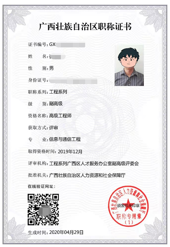 廣西職稱評(píng)審證書(shū)樣本-全國(guó)通用